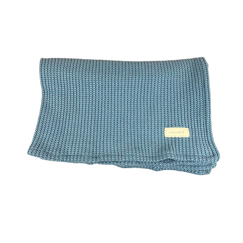 Manta ligera y suave, ideal para entretiempo, diseñada en un elegante color azul. Fabricada con tejido de punto 80% algodón y 20% poliéster, certificado OEKO-TEX para garantizar calidad y seguridad. Medidas 75x75 cm. Fácil de lavar en lavadora, aunque se recomienda no usar secadora. Un accesorio imprescindible de Cosamui para el confort de tu bebé.